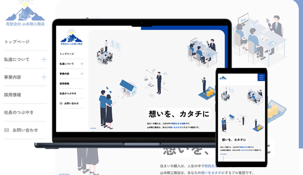 これまで培ってきたものづくりの管理経験を活かし、Web制作を通じて、一つひとつの想いに寄り添うサイトづくりを行っています。