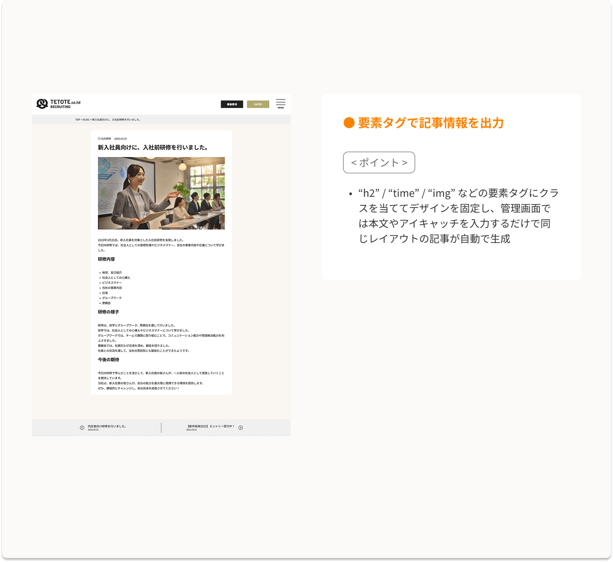 • 記事内の h2を収集して目次を自動生成し、クリックすると該当見出しへスクロール移動。